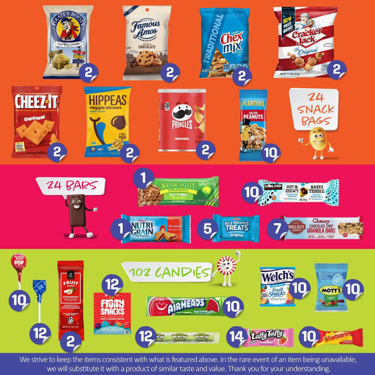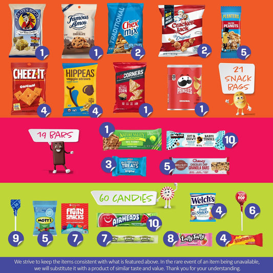 I AM Snacky - Valentines Day Snack Box Care Package + Greeting Card - SNACKY'S PARTY PACK (100 Count) Galentines Birthday Sweet Treats Gift Basket, Candies Chips Corporate